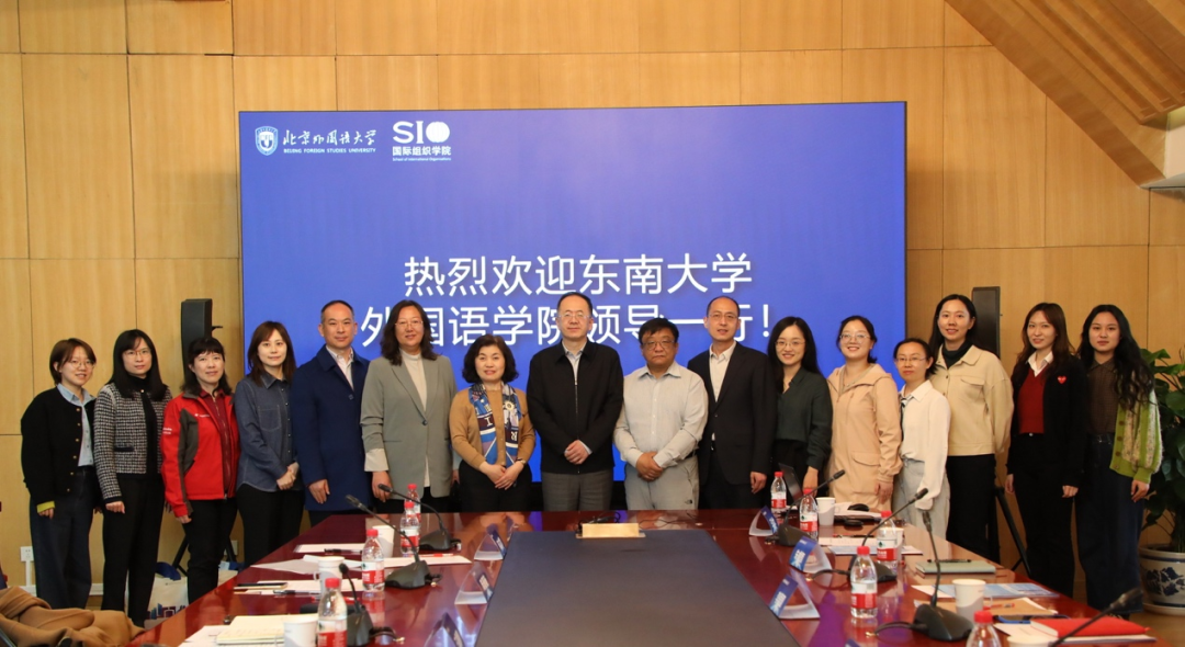 3月30日,东南大学外国语学院一行来院交流座谈,校党委副书记、副校长、国际组织学院院长贾文键,国际组织学院常务副院长李辉,东南大学外国语学院院长陈美华,党委书记王勇刚出席座谈会。北外学院、国际组织学院党总支副书记李爱国主持座谈会。